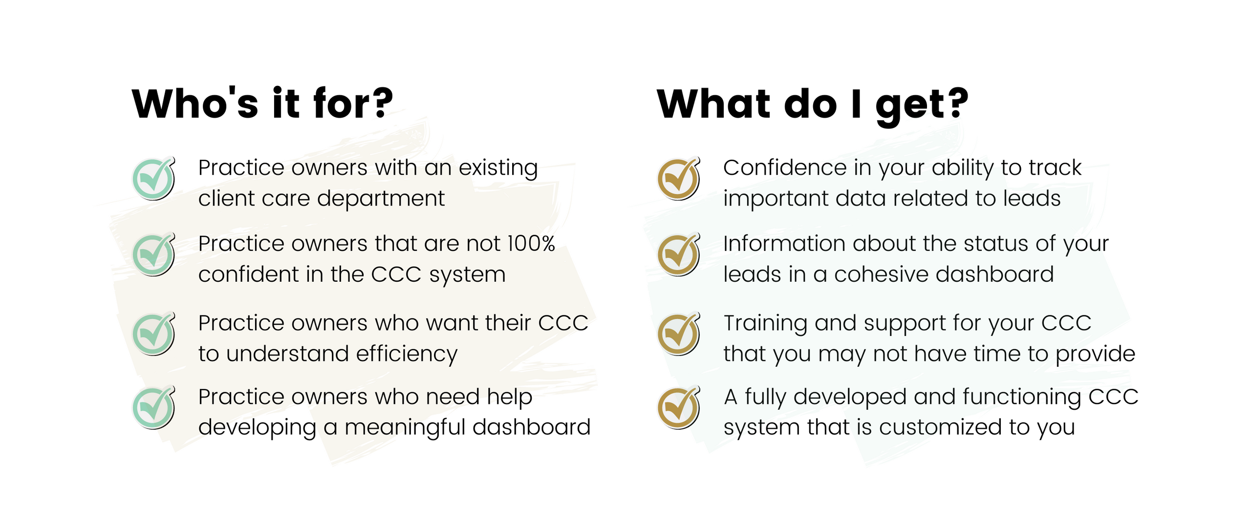 A client care dashboard can be the singular tool that informs the decisions in your practice. From hiring, to marketing, to billing and collections, client care is where it all begins.